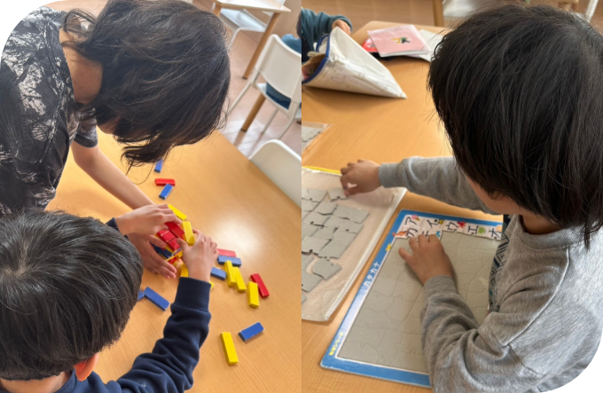 「まなび」の時間は一人ひとりに合わせた課題を設定し、子どもたち自らが「できた」「やれた」と感じ、「やりたい」「やってみよう」という意欲を育みます。工作や、公園での外遊び。また日常の生活に活かせる経験を積み重ねることを目的に「買い物」「公共交通機関」を使っての外出など、さまざまな活動を通して子どもたちの「好き」を見つけ、一人ひとりが満足できる活動を目指します。将来の趣味や生活の幅を広げる可能性を探していきます。