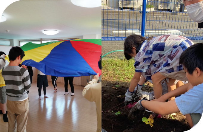 学校での疲れを癒すとともに、友達と遊ぶ時のルールやマナー、気持ちの伝え方を学ぶ場とし考えています。