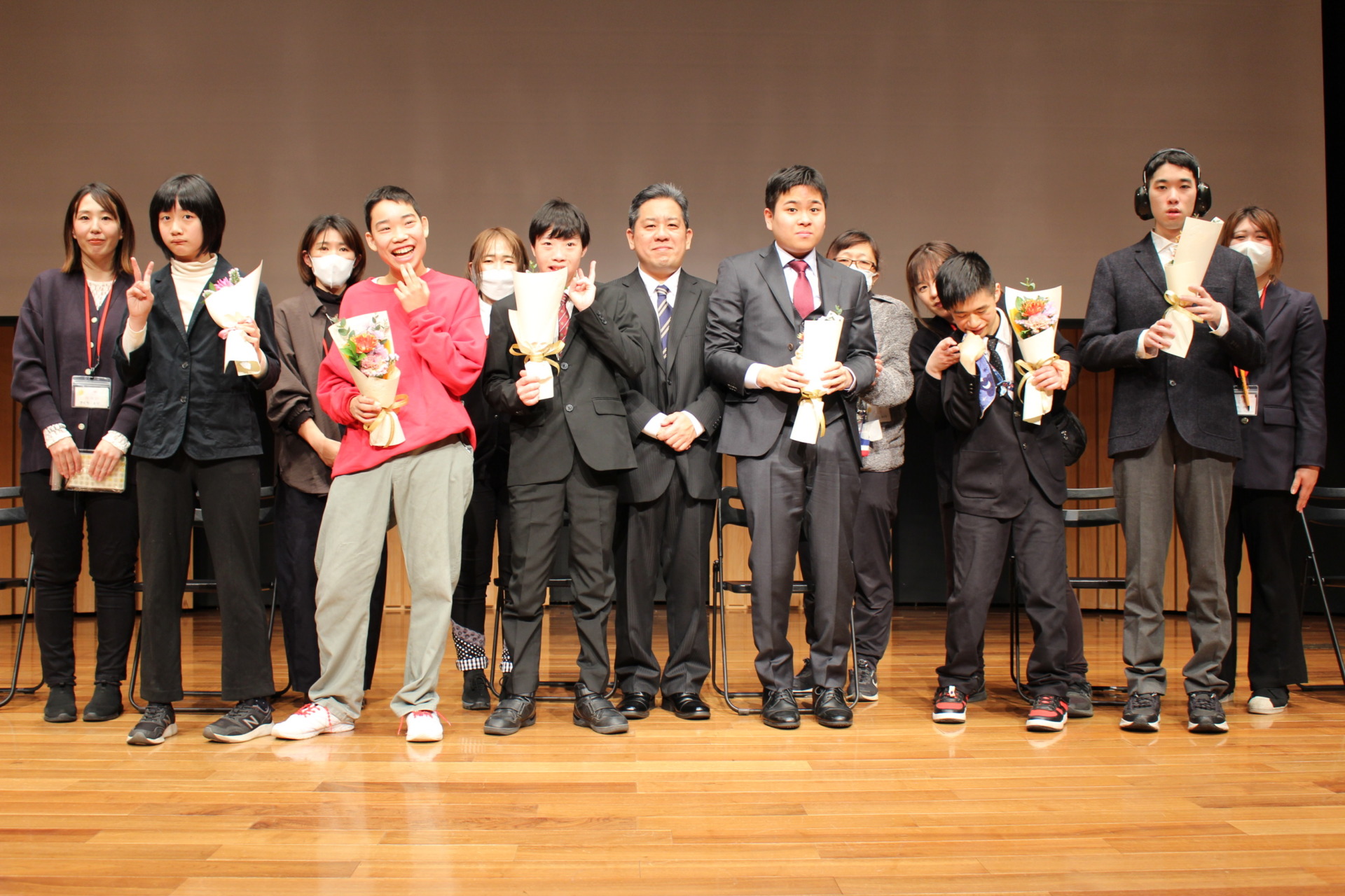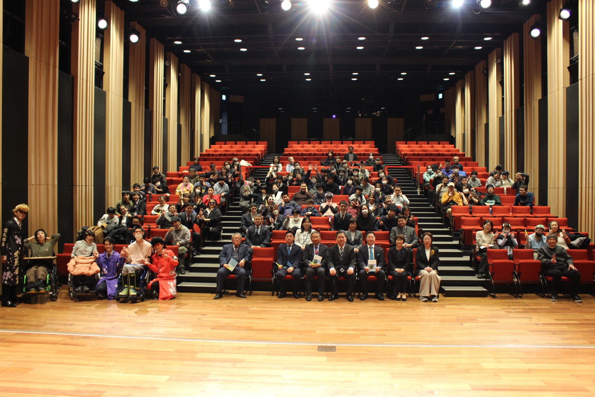 成人部の利用者さんたちと職員、多くの来賓の方々に参加して頂きました。